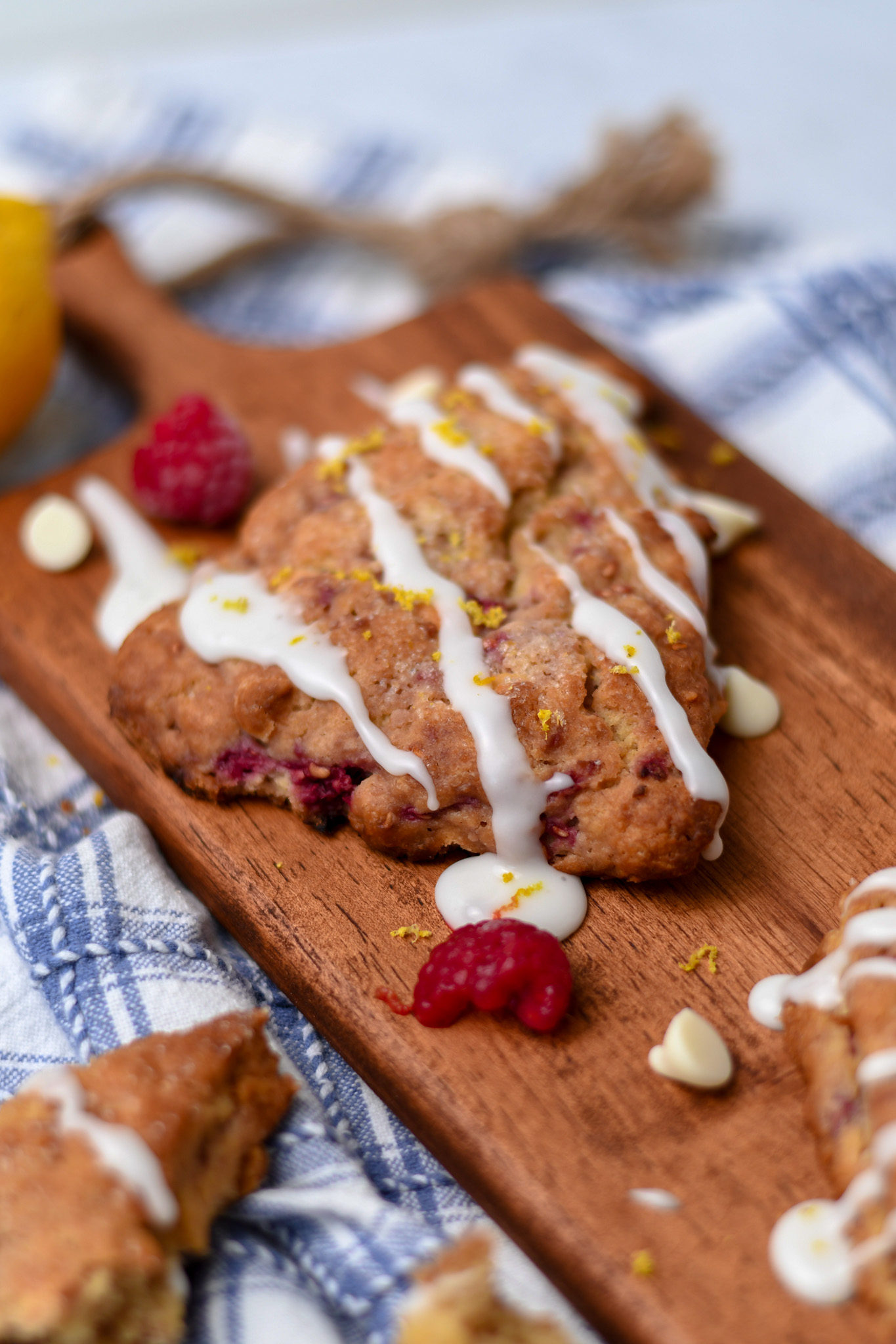 I enjoy making scones because they seem fun and fancy, but are fairly simple to create. There are so many varieties to consider from sweet to savory. To mark the end of summer, I chose sweet raspberries and a bright lemon flavor.