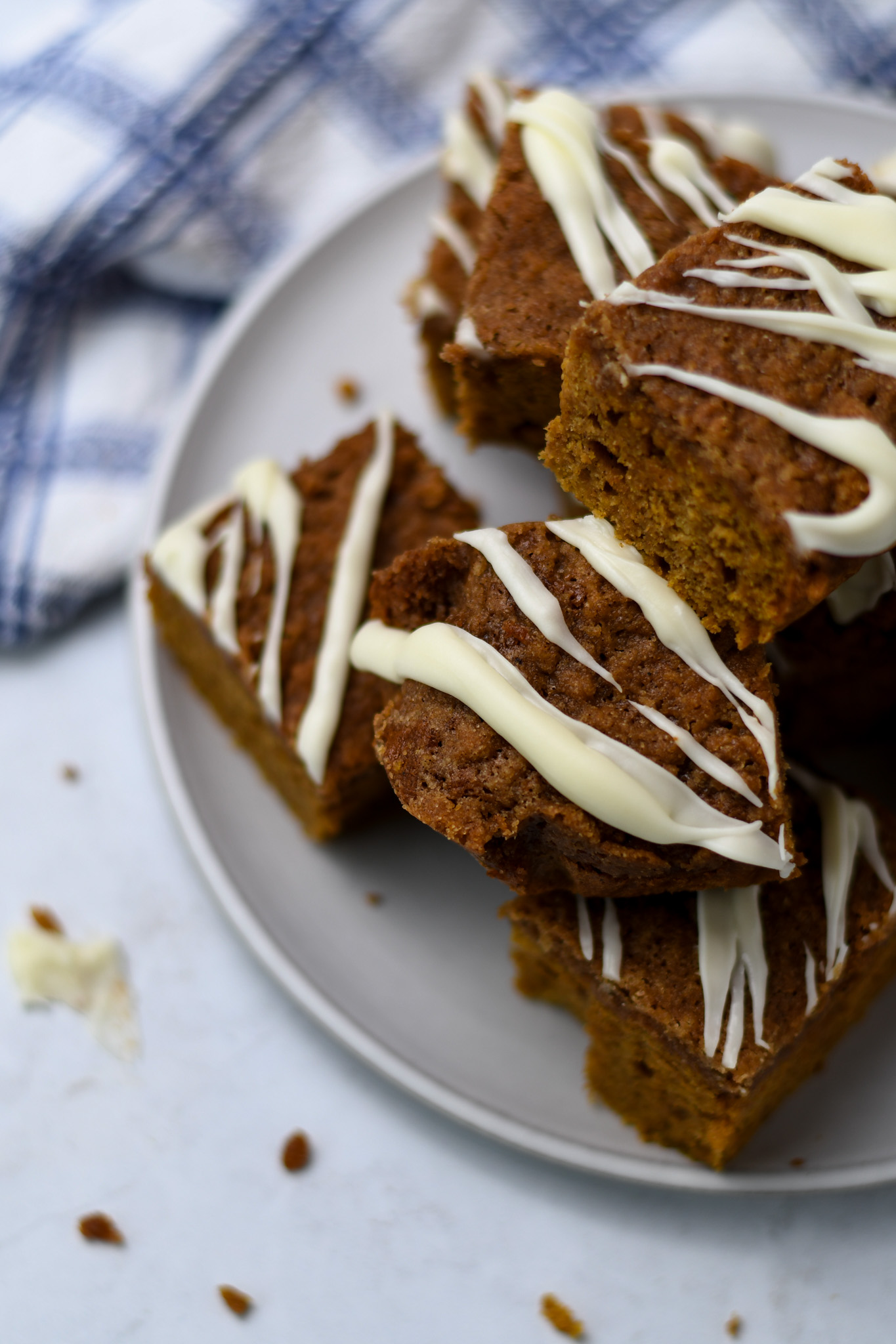 This gluten free pumpkin coffee cake might just be the perfect fall dessert! Topped with a simple vanilla drizzle, this dish is a crowd-pleaser! Plus, your house will smell amazing!